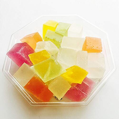 マンゴー、メロン、スイカ、ブルーベリー、ピーチの5種の色と味で目にも涼しい寒天菓子。