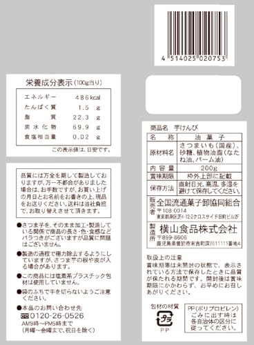 原材料:さつま芋(国産)、砂糖、植物油脂(菜種油、パーム油)