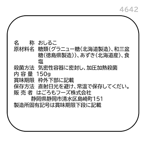 原材料:糖類(グラニュー糖(北海道製造)、和三盆糖(徳島県製造))、あずき(北海道産)、食塩