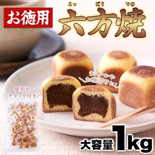 ■商品名:六方焼 ■名称:菓子 ■原材料名:こしあん(国内製造)(生あん、砂糖、水飴、食塩、寒天)、小麦粉、砂糖、でん粉、鶏卵、水飴、麦芽糖、みりん、食用植物油脂/ソルビトール、グリセリン、膨脹剤、乳化剤、(一部に小麦・卵・大豆を含む) ■内容量:1000g (個装紙を含む) ■賞味期限:製造より常温90日 ■保存方法:直射日光、高温多湿を避けてください。 ●表面に白い粉が見られますが、手粉(小麦粉)ですので、ご安心ください。 ●個包装紙には鮮度保持用の小さな切れ込みを設けています。