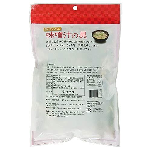 素材の栄養分や風味を大切に乾燥させました。きゃべつ、わかめ、きざみ麩、高野豆腐、ねぎをバランスよくミックスしたお徳用サイズ味噌汁の具です。お湯で5分、または水で10分以上浸してからご利用下さい。お急ぎの時は、水の状態から鍋にそのまま入れ「ひと煮立ち」させてからご利用下さい。味噌汁のほかインスタントラーメンなどにもご利用下さい。