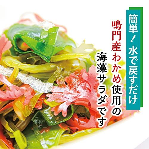 水で戻すだけの鳴門産わかめ使用の海藻サラダです。 渦潮の激しい潮流で育った鳴門産わかめを使用。シャキシャキとした歯ごたえと豊かな風味を楽しめます。