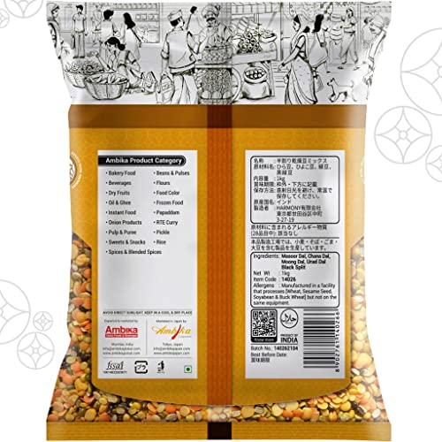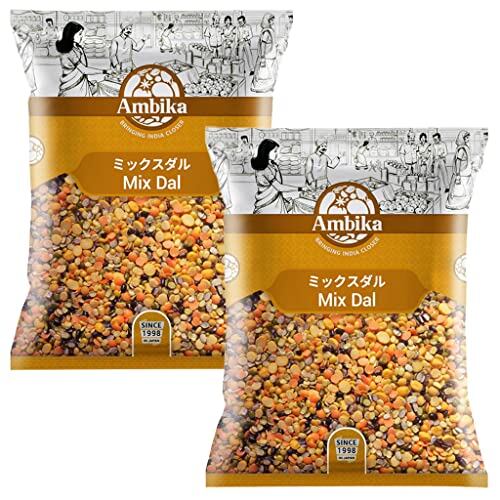 4種類のミックス豆 Ambika インド産 - Mix Dal - ミックスダール (ひら豆,ひよこ豆,緑豆,黒緑豆) - 日本語レシピ付き (Mix Dal) (ミックスダール 1kg x2袋 - Mix Dal 2kg)