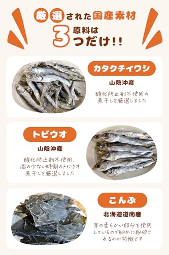 【素材そのまんまの粉末和風だし】カタクチイワシ・トビウオ(あご)・昆布の3つをそのまんまガーっと粉末にした、和風だしです