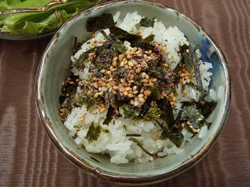 原材料:ごま、乾のり、澱粉、塩蔵しそ(赤しそ、塩、梅酢)、梅肉、砂糖、塩、しそ液、本醸造醤油、あられ、梅酢、乳糖、酵母エキス、本みりん、発酵調味料、果糖、かたくちいわし、抹茶、海老、鰹節、魚介エキス、黒糖蜜(黒糖、原料糖、液状ぶどう糖)、デキストリン、粉末醤油、昆布、椎茸、あご(飛魚)、(原材料の一部に小麦、大豆、鶏肉を含む)
