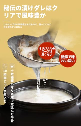 【秘伝の漬け込み、10時間じっくり煮込んだエッセンス】米麺の魂は、丁寧に煮込んだ漬け汁の鍋にあります。当店の秘伝の漬け汁は最高級のもので、このスープも10時間かけてじっくり煮込んだものです。厳選されたニウ骨を十数種類のマリネ液で煮出したオリジナルスープは、脂っこくなく、臭みもなく、爽やかな香りとコクがあり、火を通さずとも美味しく飲める。長時間煮込むことで、マリネ液の風味がスープに溶け込み、スプーン一杯のスープに豊富な栄養とまろやかな旨みが凝縮されている。この秘伝の漬け汁は、米麺によく合うだけでなく、米麺の独特な風味の重要な部分でもある。