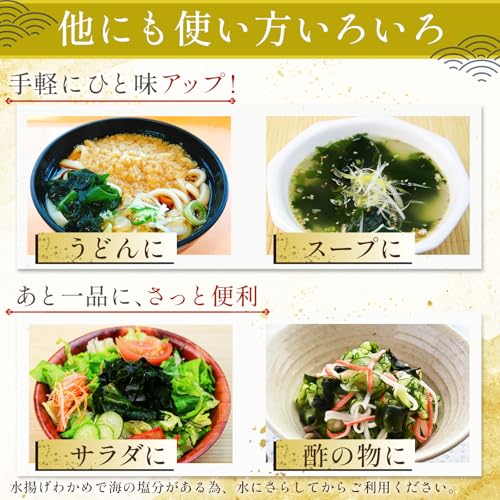 漁師が獲ったとれたてわかめを、地元ですぐにカットして天日干し。だから旨みがそのまま。(水揚げわかめで海の塩分がある為、水にさらしてからご利用ください。)