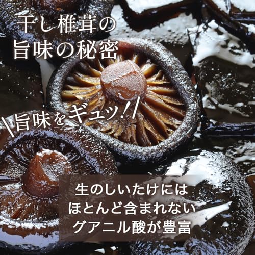 干し椎茸は生の椎茸より旨み成分がアップした風味と凝縮された旨みを楽しめます。生のしいたけにはほとんど含まれないグアニル酸が豊富です。