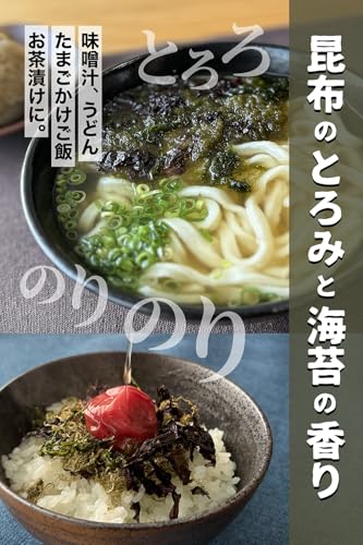 北海道産 とろろ昆布、三重県伊勢・鹿児島・愛媛の 黒ばら海苔 と あおさ(あおのり・ヒトエグサ) を絶妙に組み合わせた、昆布と海苔と あおさ のミックス。昆布のとろみ と うまみ、海苔の濃厚な磯の香り、あおさ の爽やかな香気が食欲をそそります。味噌汁の具やご飯のお供、お茶漬けにおすすめです!