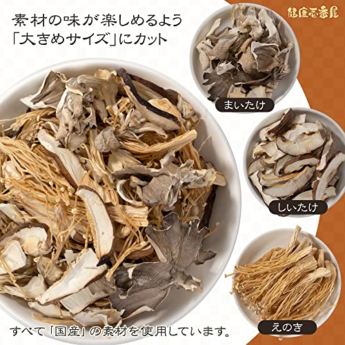 健康壱番屋 乾燥きのこ ミックス 国産 無添加 おおぶりキノコ使用 北海道産一級品 えのき 椎茸 まいたけ 乾燥野菜 80g 1袋