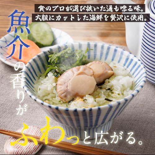 【 味と品質のこだわり 】お湯をかけた瞬間、立ちのぼる 魚介 の香りが至福 / 食欲の落ちる季節でもさらっと食べられる / お湯をかけるだけで、料亭の味わい