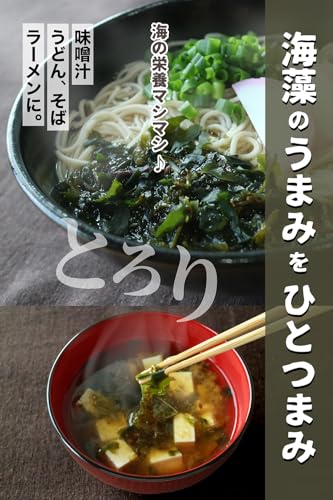 【無駄なく全部】乾燥品ですので、粉状に崩れた海藻が袋の底に少し残りますが、汁物に加えてトロ味付けをしたり、塩を加えておにぎりにしてもおいしくお召し上がりいただけます。