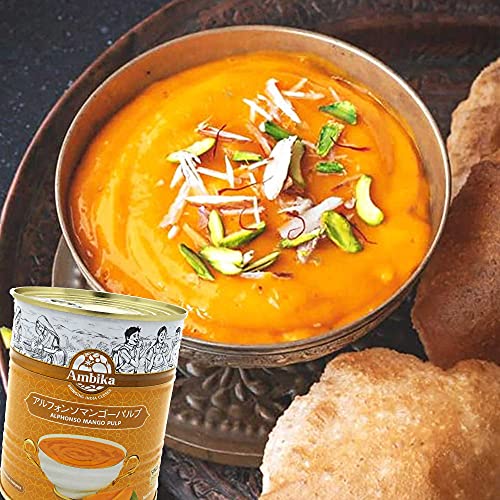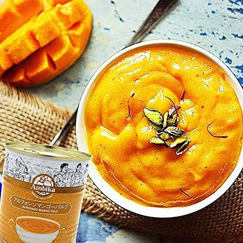 Ambika インド産 - アルフォンソマンゴーパルプ Alphonso Mango Pulp - 850g - 日本語レシピ付き (2缶)