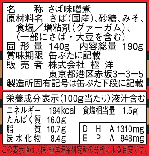 原材料:さば、砂糖、みそ、食塩
