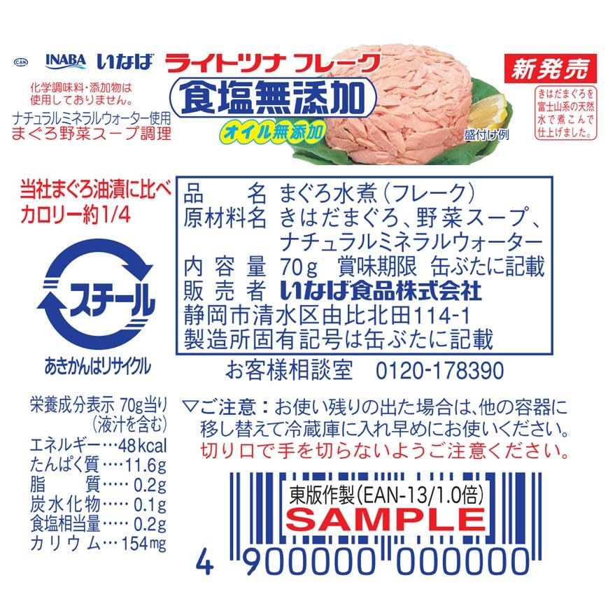 いなば食品 いなば 国産ライトツナ食塩無添加 70g×24缶