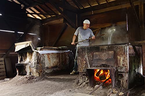 薪と特注の鉄釜で煮上げる