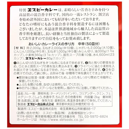 エスビー S&B 赤缶カレー粉 特製エスビーカレー 2kg 業務用 オリジナル開封日シール付き