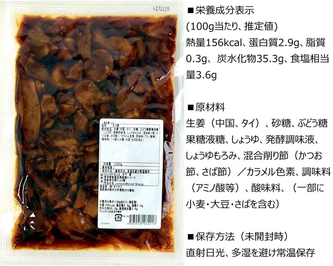 「もう一品」ほしい時に! かつお節&さば節ブレンドの「焼き生姜」甘辛風味が最高の佃煮220g【賞味期限2025/12/30】3個