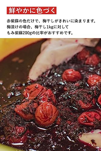 梅干しを紫蘇漬けするのにおすすめの揉み紫蘇です。梅農家のお墨付き。宮崎県産の赤紫蘇で、葉が柔らかくてフルーティーな香りが特徴です。