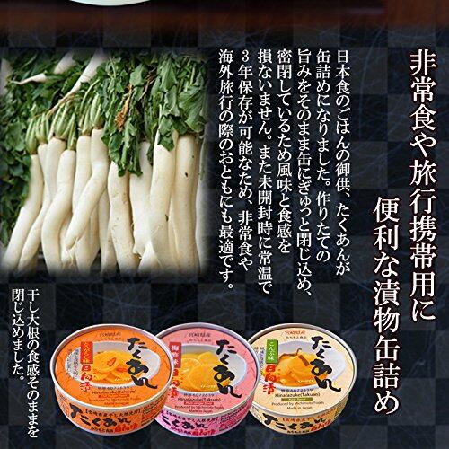 【セット内容:各2個】たくあん缶詰め:・こんぶ味・梅酢味・とうがらし味