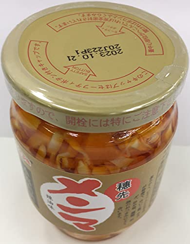 原材料:メンマ、大豆油、唐辛子、ごま油、食塩、酸味料、調味料(アミノ酸等)、メタリン酸Na、酸化防止剤(ビタミンE)