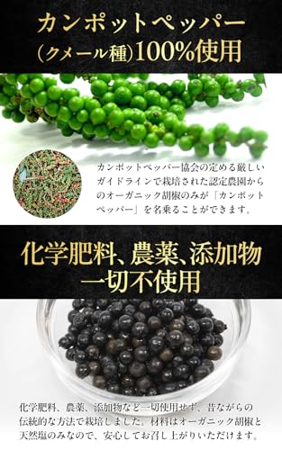 ✅世界最高品質の胡椒:PepperUpの生胡椒の塩漬けは、世界一美味しいと言われるカンボジア・カンポットペッパー 100%使用。化学肥料や農薬を一切使用せず、大切に育てられたオーガニック胡椒の実を「生」のまま塩漬けにしました。