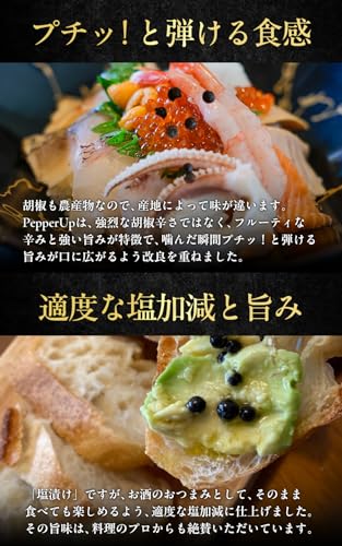✅ウマミのかたまり:生胡椒は、梅干しのような感覚でそのまま食べられます(ミルで挽く必要はありません)。キャビアやいくらのようなプチッ!と弾ける食感、お口に広がる香りとパンチ、ウマミがダイレクトに伝わります。