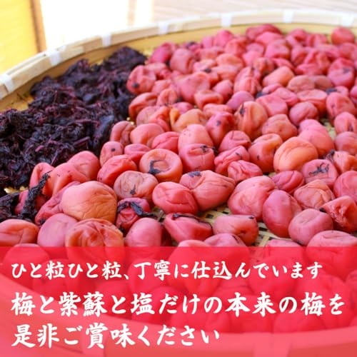 竹内農園のしそ梅干しは、紀州南高梅を塩で漬け込んだ無添加梅干し。昔ながらのすっぱい味で、皮がうすくて柔らかい食感が人気です。