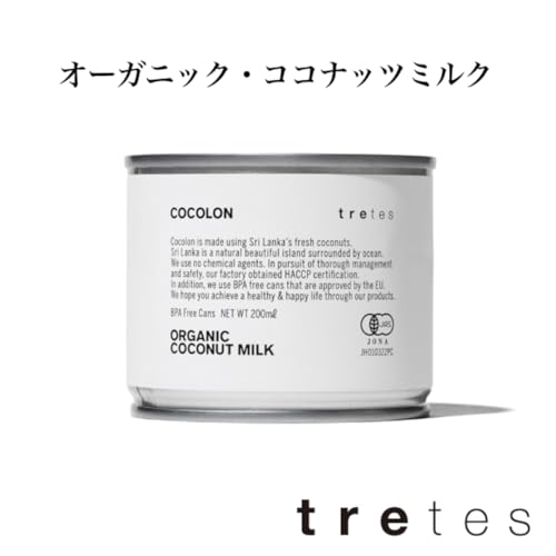トレテス オーガニック ココナッツミルク 有機ココナッツ100% ココロン 食品添加物 無添加 無農薬 無漂白 200ml×4個