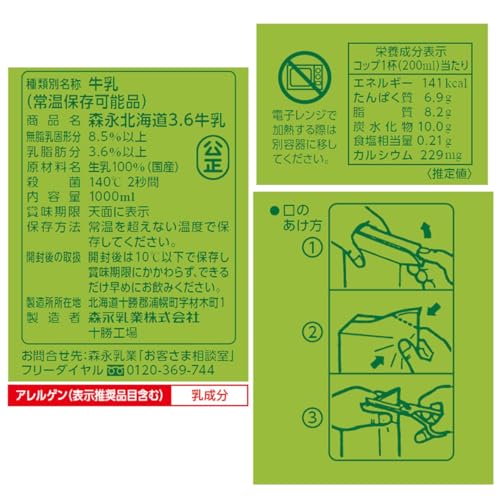 森永乳業 森永北海道3.6牛乳 1000ml ×6本 [ 常温保存可能品 生乳100%使用 成分無調整]