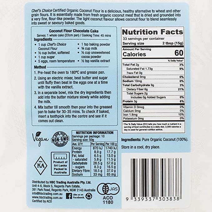 (500g~1kg)シェフズチョイス(Chef's choice) オーガニックココナッツフラワー 有機JAS 有機ココナッツ粉 Organic coconut flour (1kg)