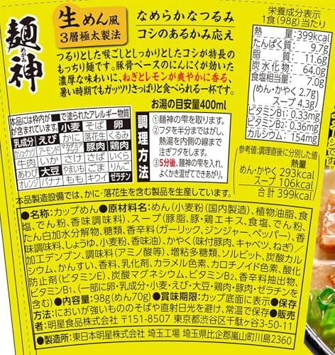 明星 麺神カップ 豚ねぎ塩ラーメン[12個入、カップ麺、ノンフライ麺、超極太麺、もっちり食感、夏限定、レモン風味ねぎ油香る、98g]