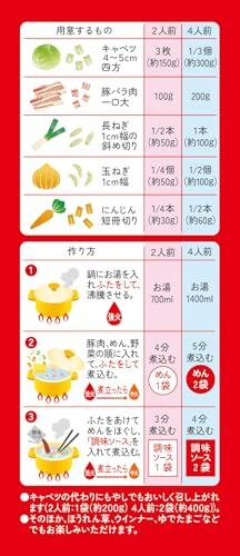 2人前(142.0g)当たり エネルギー384kcal、たんぱく質17.4g、脂質4.3g、炭水化物68.9g、食塩相当量10.3g