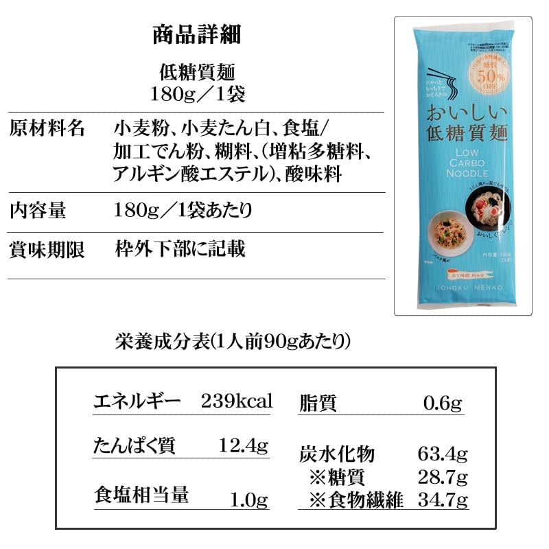 一般的なそうめん、ひやむぎと比較して50%糖質カット。