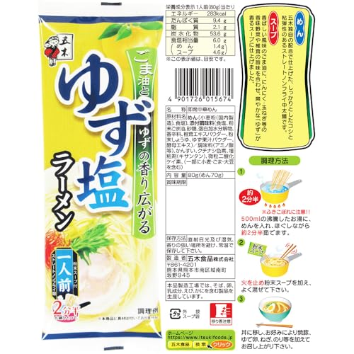 五木食品 1食棒状ラーメン ゆず塩&鶏だし醤油&こく味噌セット(3種×各5個 計15個)(ゆず塩/鶏だし醤油/こく味噌)(常温保存)(即席袋麺)