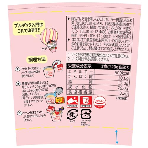 原材料:油揚げめん(小麦粉、植物油脂、小麦グルテン、食塩、玉ねぎエキス)、ソース(砂糖、チーズソース、チキン風味パウダー、チキン風味ソース、全粉乳、唐辛子調味料、植物油脂、玉ねぎ、酵母パウダー、にんにく、食塩、唐辛子エキス、こしょう加工品、カレー粉、乳酸菌発酵粉末)、粉末(全粉乳、乳等を主要原料とする食品、砂糖、チーズパウダー、食塩、バター風味パウダー、植物油脂、カーリーパセリ)/増粘剤(加工デンプン、グァーガム)、調味料(アミノ酸等)、乳化剤、香料、かんすい、着色料(パプリカ色素、アナトー)、カゼインNa、pH調整剤、酸化防止剤(カテキン)、(一部に小麦・乳成分・大豆を含む)