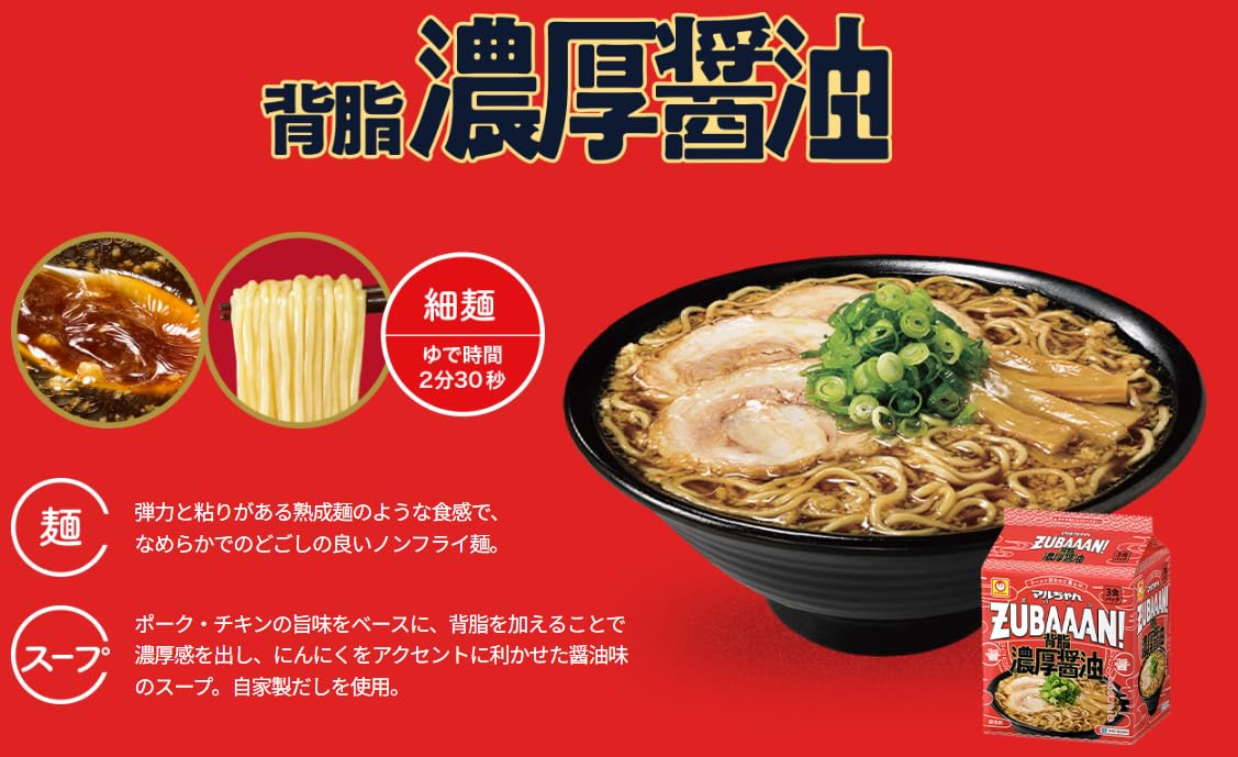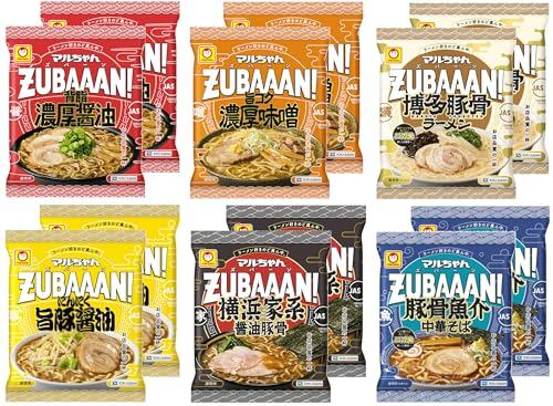 マル ちゃん ZUBAAAN! ズバーン 6種アソート 食べ比べ セット 計12食 背脂濃厚醤油・旨コク濃厚味噌・にんにく旨豚醤油 ・横浜家系醤油豚骨・豚骨魚介中華そば・博多豚骨ラーメン 各2食