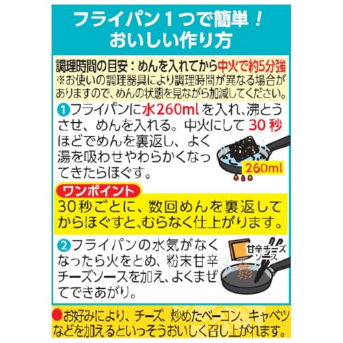フライパンで調理するので、炒めた香ばしい風味がおいしい、韓国で定番の甘辛い味わいの焼そばをぜひご賞味ください。