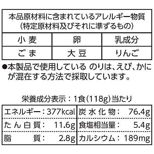 エネルギー377kcal、たん白質11.6g、脂質2.8g、炭水化物76.4g、食塩相当量5.4g・・(1食(118g)あたり)