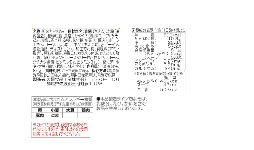大黒 マイフレンド ビックごまみそらーめん 105g×12個