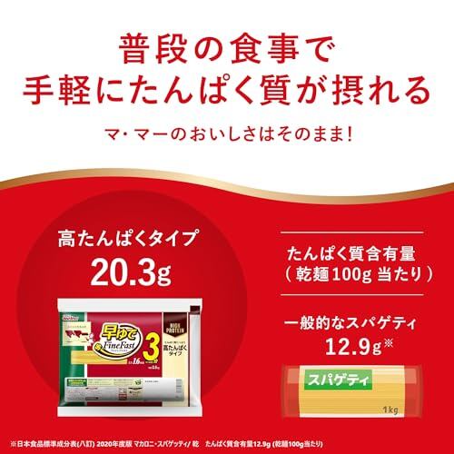 マ・マー 高たんぱく スパゲティ 早ゆで 3分 1.6mm 2.5kg( 約25人前 )大容量 パスタ 麺 ( タンパク質 / 乾麺100g当たり 20.3g / 栄養バランス ) まとめ買い アルデンテ 時短 ごはん作り 簡単調理 手軽 FineFast