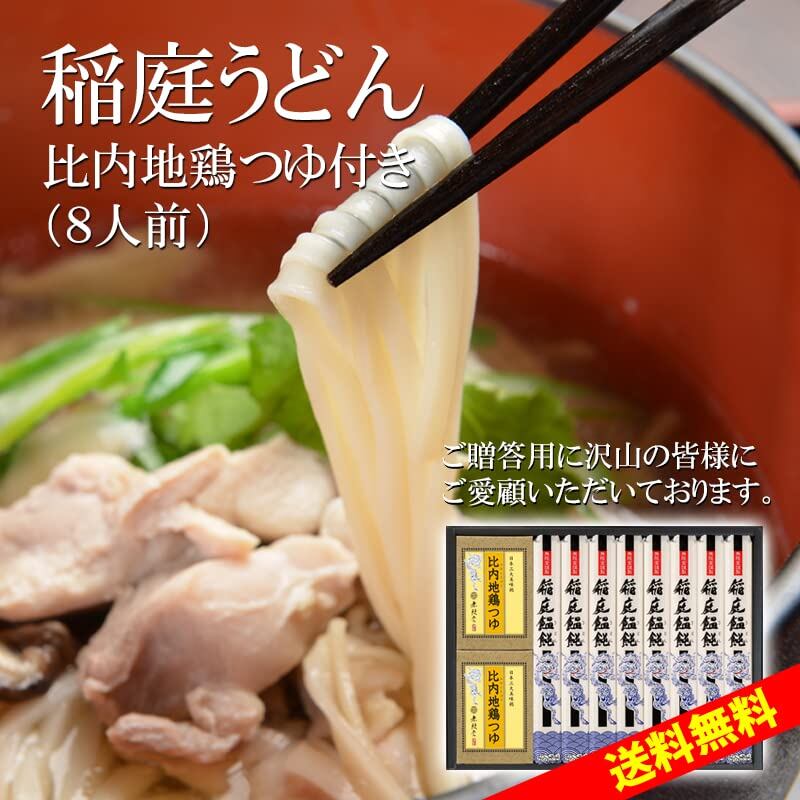 無限堂 稲庭うどん 比内地鶏つゆ付き詰合わせ(8人前) (うどん 80g×8袋 つゆ 30ml×8袋)