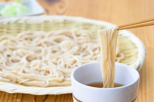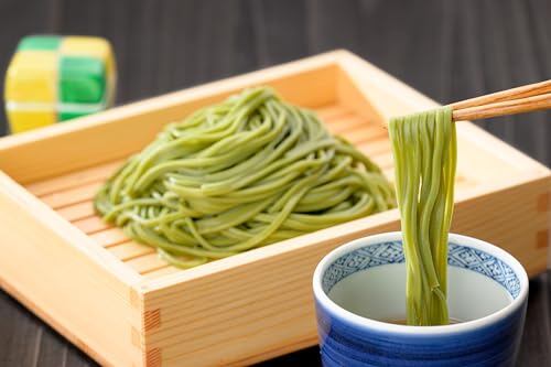 着色料や香料を使用せず、抹茶本来の鮮やかな緑色と清々しい香り、上質なそばの食感をお楽しみいただけます。