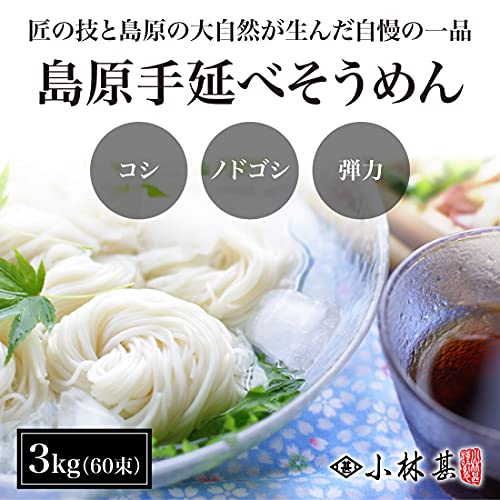 島原 手延べそうめん 島原の光 3kg (50g×60) 紙箱入 (そうめん 素麺 乾麺 夏 お取り寄せ 九州 無添加 国産)【 小林甚 】
