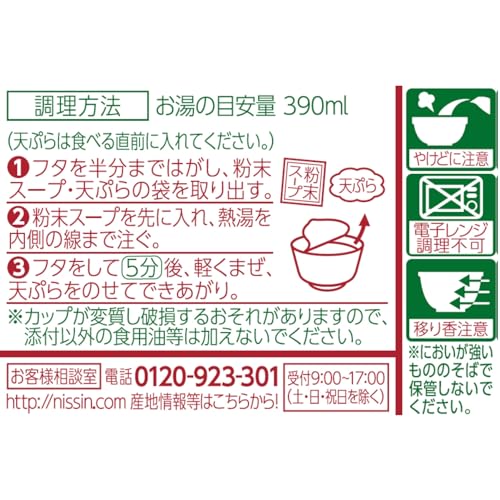 日清の利きどん兵衛 天ぷらそば 信州 [鰹さらに香る濃い旨み] 日清食品 カップ麺 92g ×12個