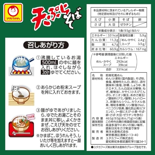 マルちゃん 東洋水産 天ぷらそば 5P×6個