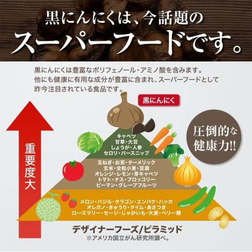 【栄養満点のスーパーフード】黒にんにくは通常のにんにくと比較して、栄養健康成分が何倍にも増加するといわれています。その代表例が、ポリフェノール・アミノ酸・S-アリルシステインなどが有名です。にんにくは野菜や果物の中で最も重要なものの1つとして位置付けられており、注目され続けているスーパーフードです。