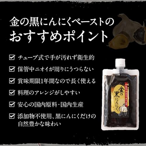 金の黒にんにく 青森県産 黒にんにく 100%使用 ペースト 150g×2袋 国内生産 添加物不使用 無加水 キャップ付き 料理の調味料としてもおすすめ
