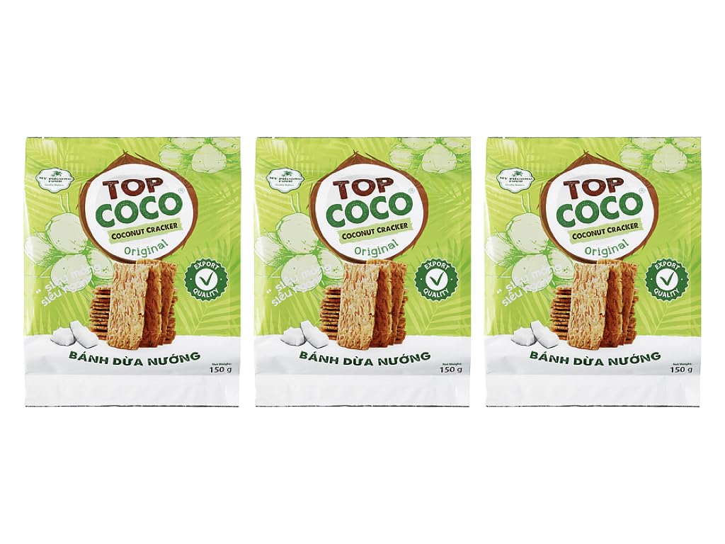 神戸物産 ココナッツクラッカー オリジナル TOP COCO COCONUT CRACKER Original MY PHUONG FOOD Quality Matters ザクザクとした食感 ココナッツの香りと甘さ 香ばしい味わい お菓子 おやつ おつまみ トッピング 個包装 原産国ベトナム ココナッツ 145g×3袋