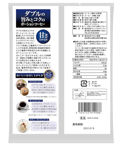 サンパウロコーヒー ダブルの旨みとコクのポーションコーヒー 甘さひかえめ1袋(19gx18個入)